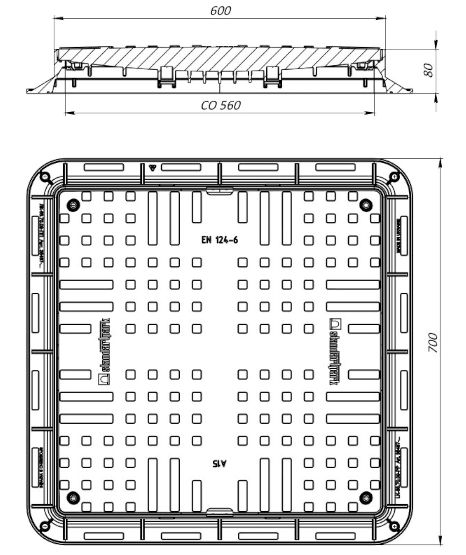 Schachtdeckel Quadratisch 700x700mm mit Rahmen
