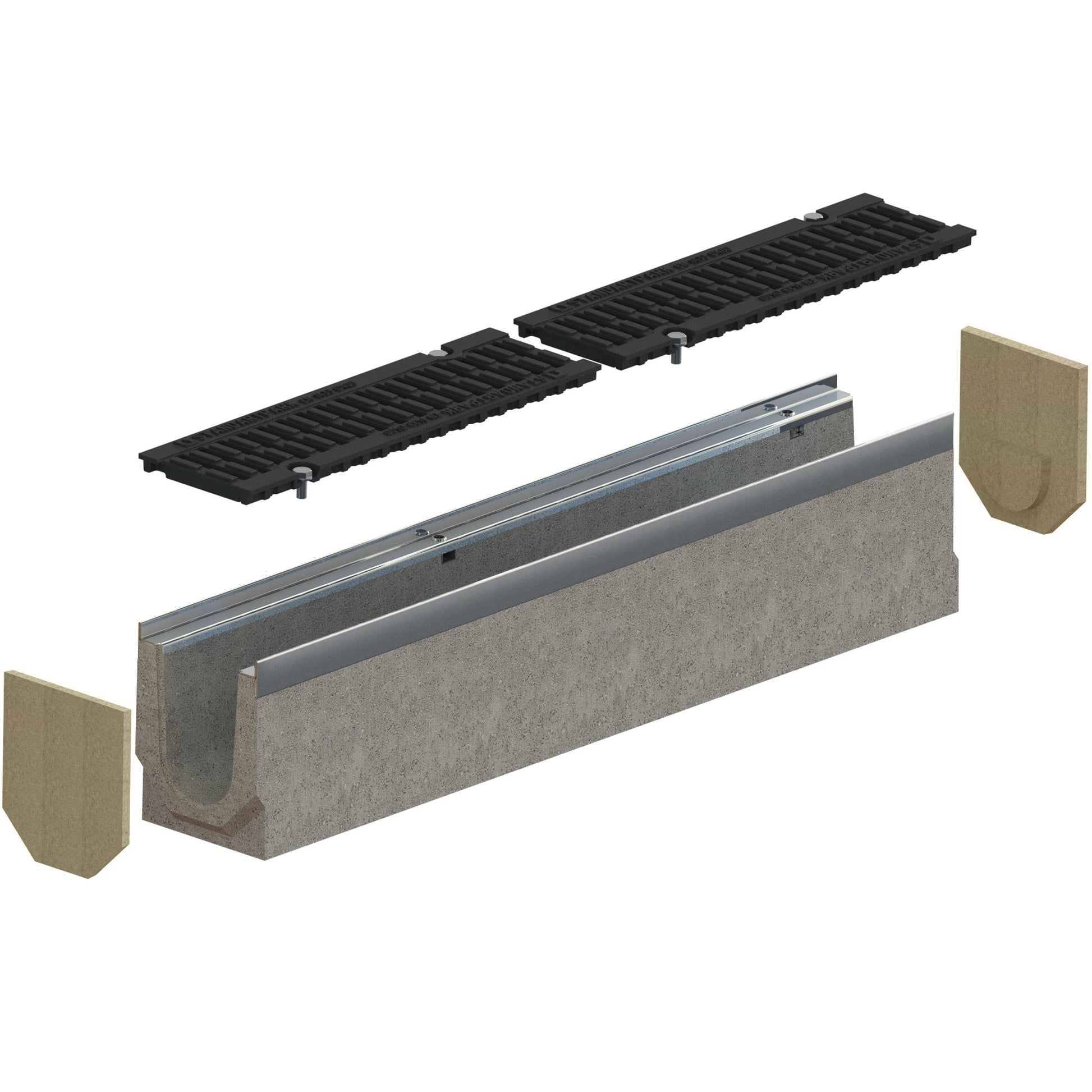 Schwerlastrinnen Betonrinne 16x16cm 1m set. + Gussrost D400